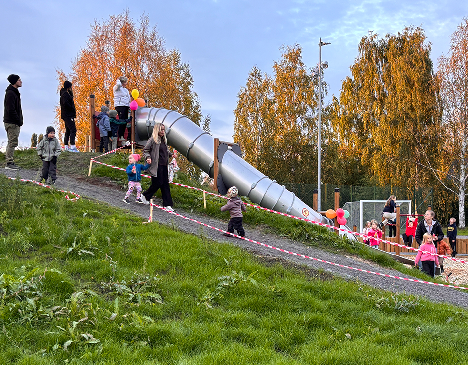 - Pulkabacke med rutschkana och klätterlek
